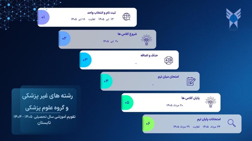 تقویم آموزشی دانشگاه برای رشتههای غیر پزشکی و علوم پزشکی (تابستان سال تحصیلی 1405- 1404)