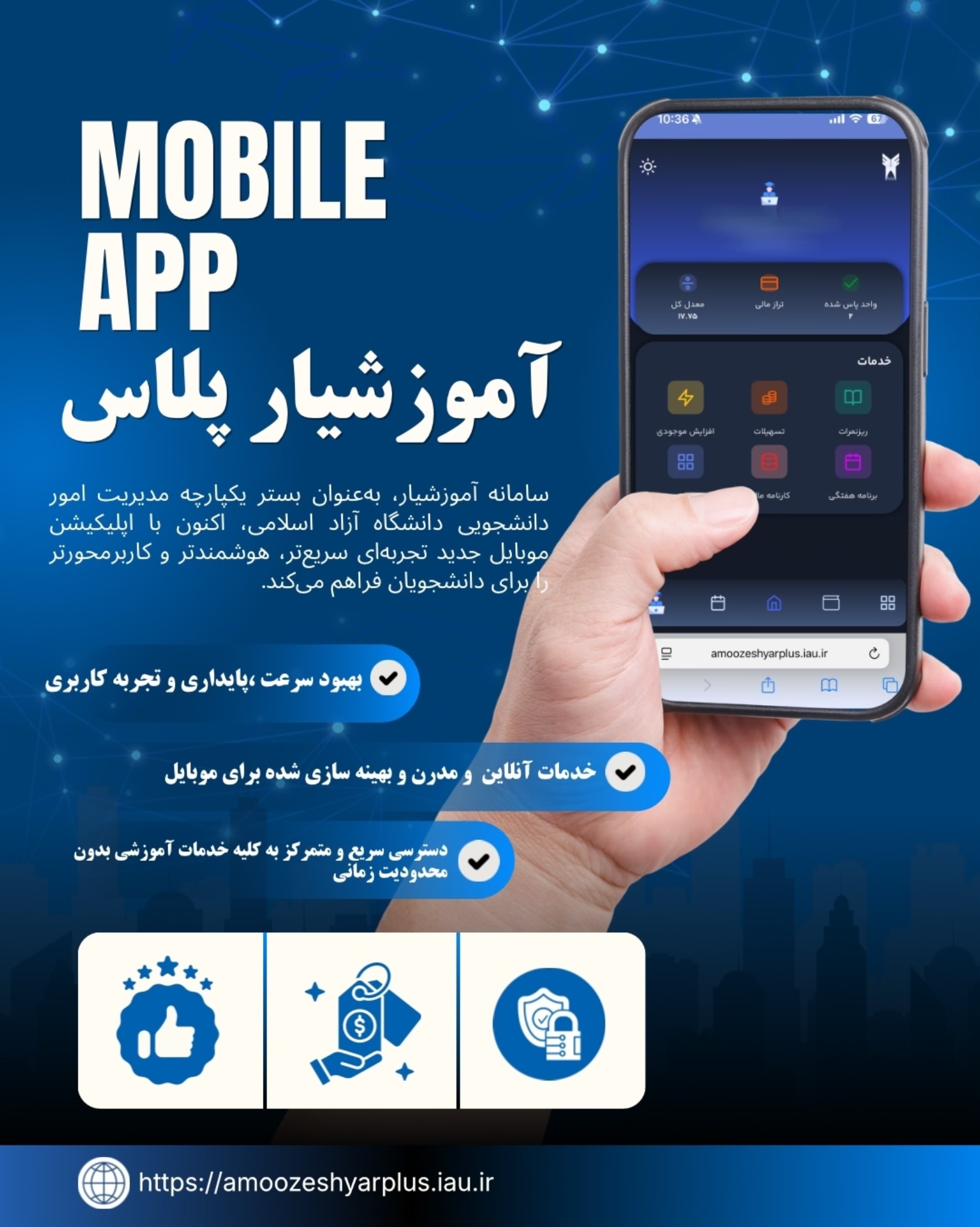 جهـت سهولت اطلاع رسانــی و دسترسی به خــدمات آتی آموزشـــیار میتـوانید از طریق آموزشیار پلاس و پیامرسان آیگپ اقدام فرمائید.